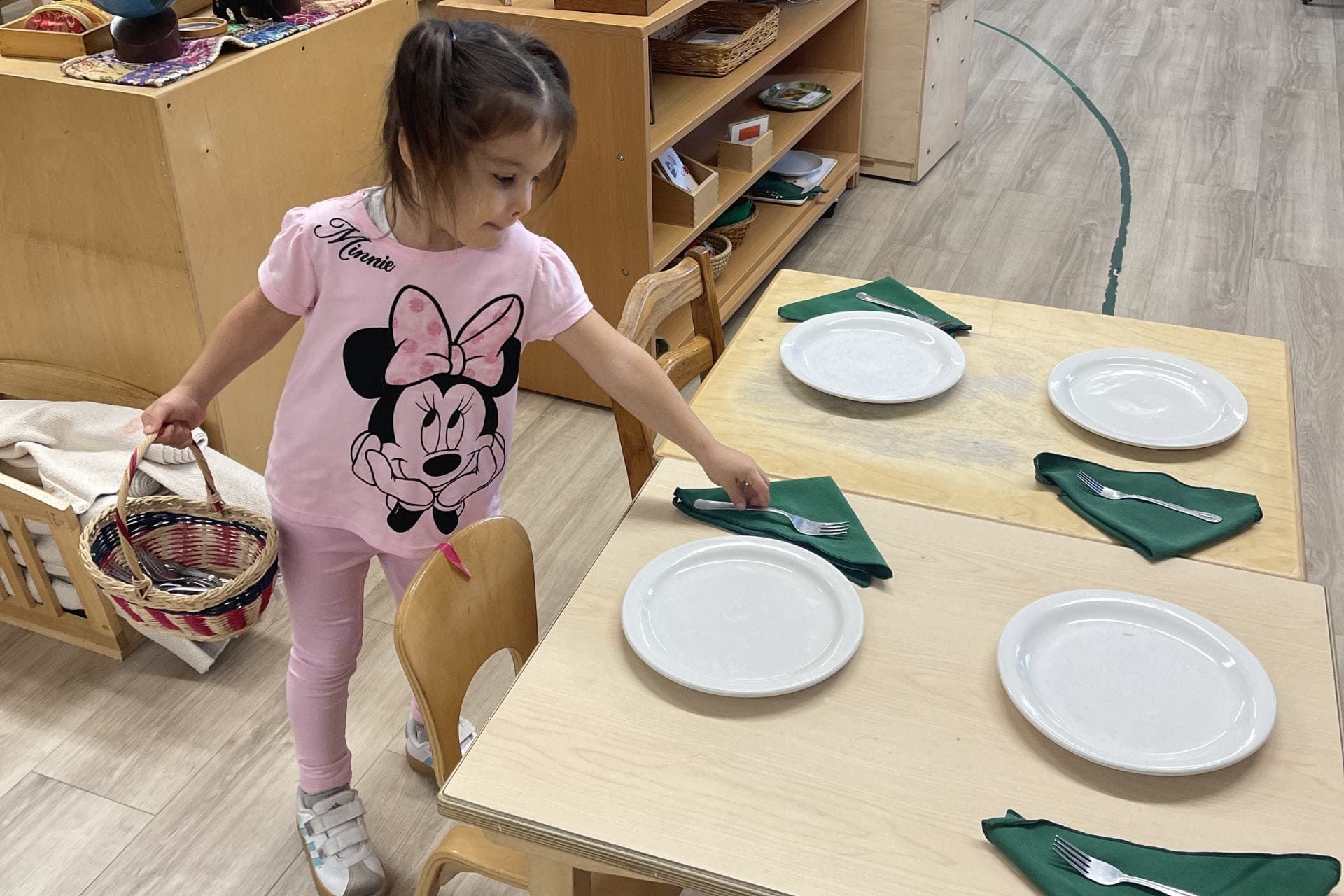 A Montessori prepared environment is a place designed for children. And the design deeply respects children’s natural drives, including their sensitive periods for learning, their human tendencies, and their desire to move, explore, and belong. The idea is to create a place where children can feel at home while developing both their inner selves and outer skills.